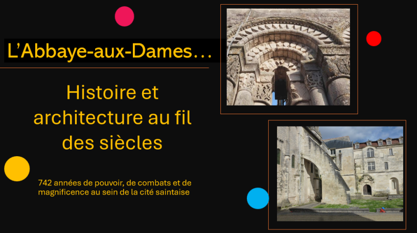 Ancienne abbaye bénédictine créée en 1047, l’Abbaye aux Dames est le 1er monastère pour femmes de toute la Saintonge. Grande cité musicale elle organise le célèbre festival saintais en juillet. Elle est également un Centre Culturel de Rencontre C.C.R, accueillant des rendez-vous patrimoniaux et culturels tout le long de l'année.